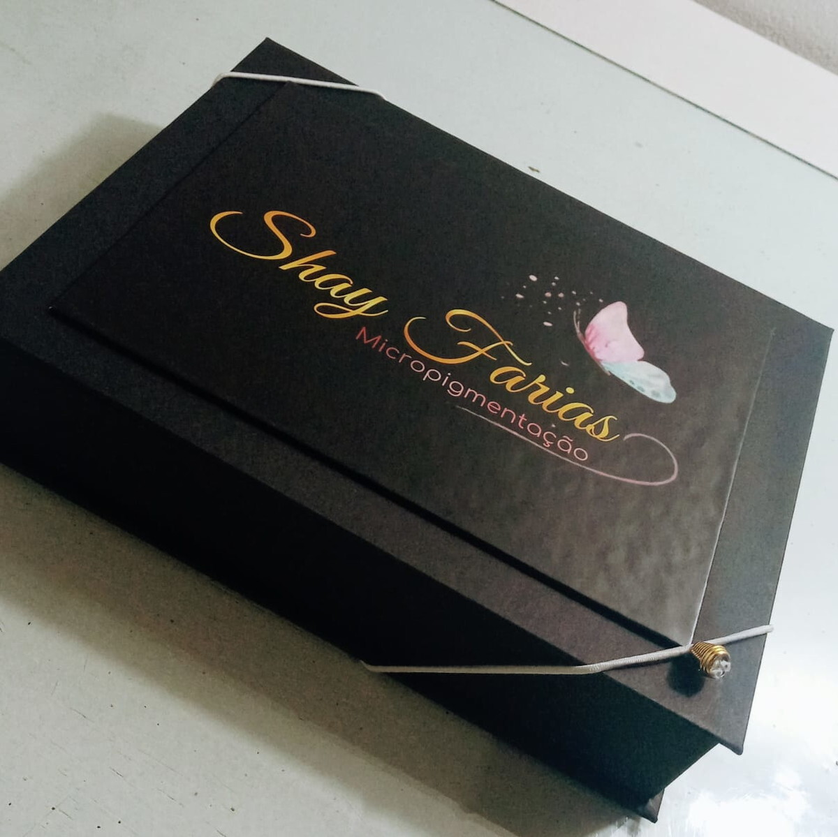 Caixa com fita personalizada;