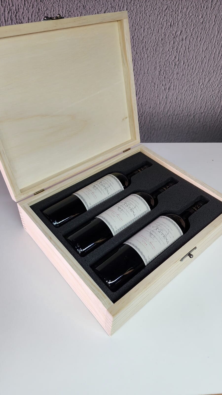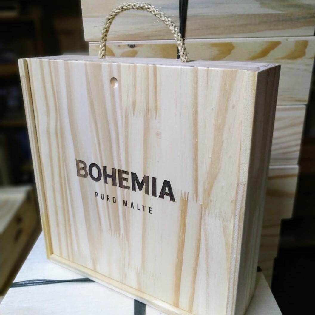 Caixas de madeira personalizada com berço interno sob medida. Caixas especiais para vinhos, bebidas e press kit. Confeccionada com madeira pinus.